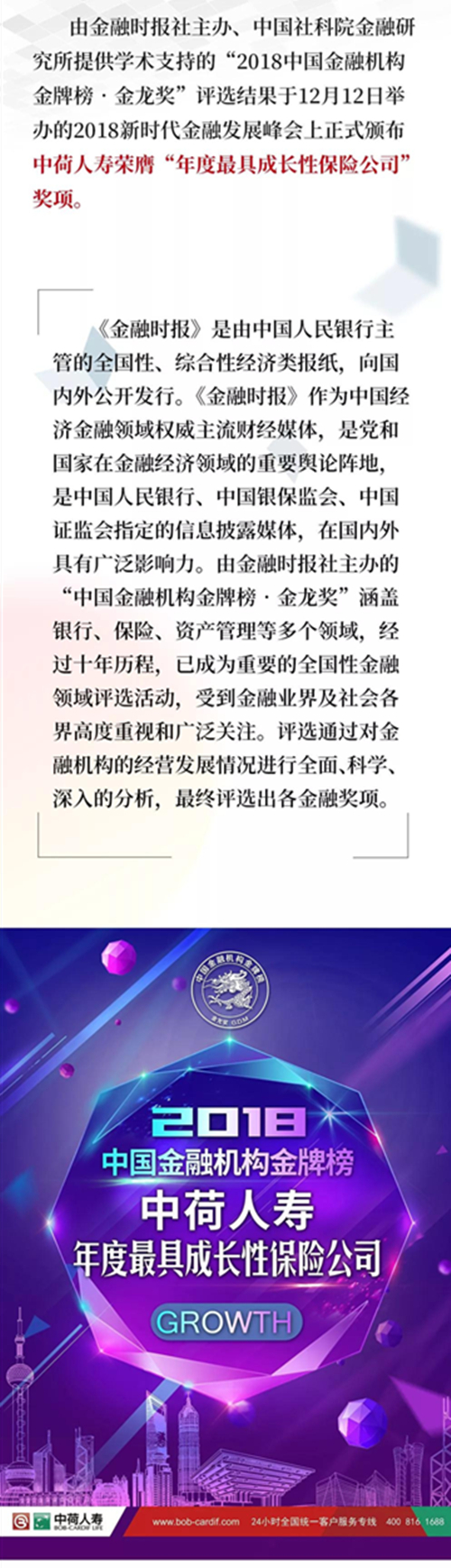 中荷人壽榮獲“年度最具成長性保險(xiǎn)公司”獎(jiǎng)項(xiàng)!