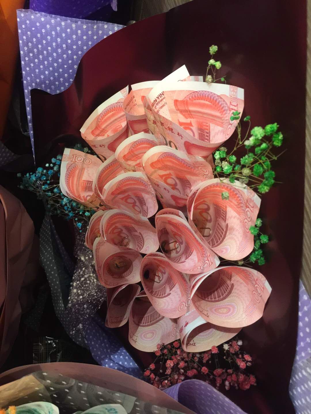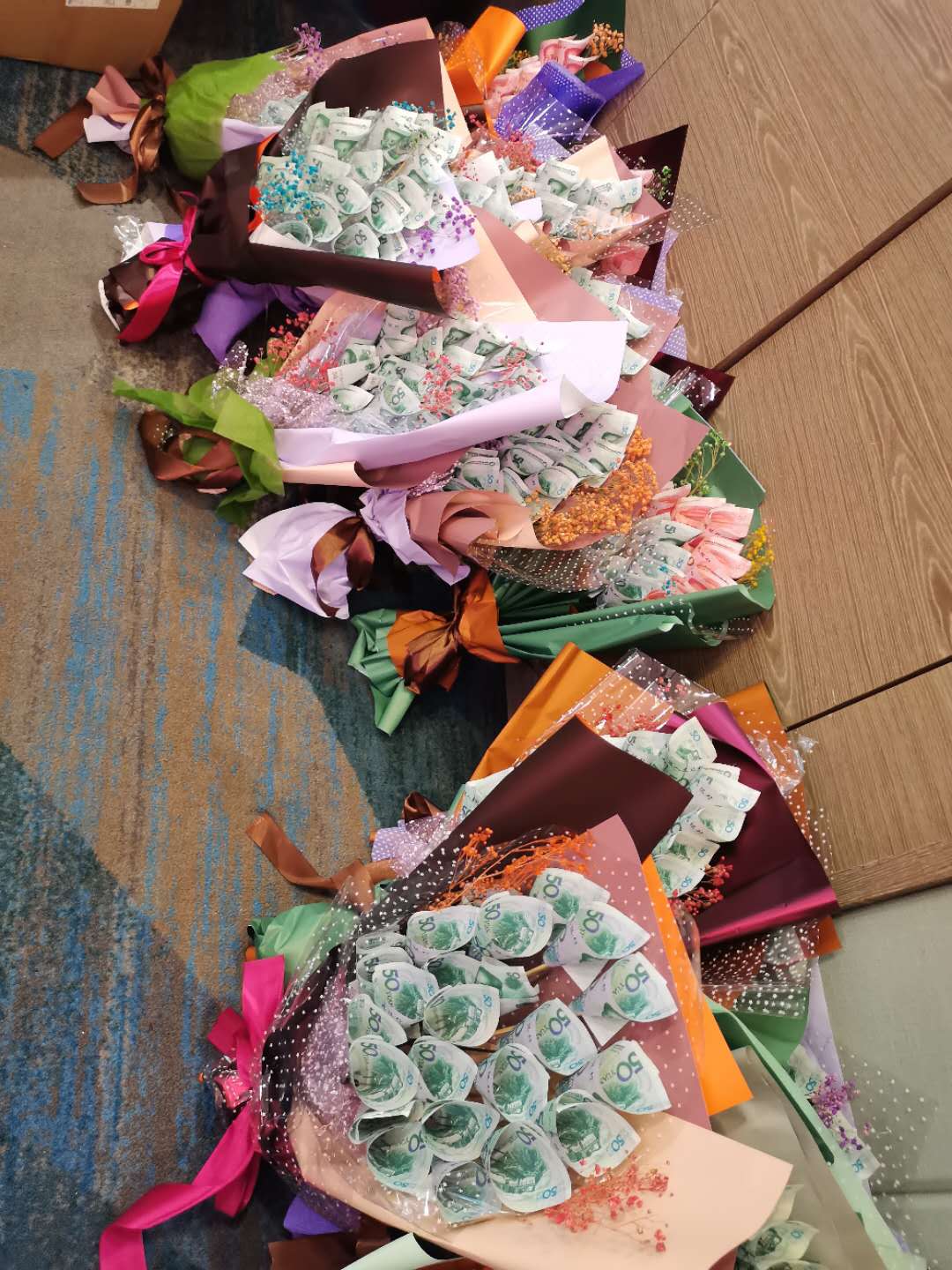 14日晚,榮譽(yù)宴在舜和柏曼酒店舉行,每位達(dá)成季度之星的伙伴現(xiàn)場都拿到了用“毛爺爺”包成的錢花,每個(gè)人臉上都洋溢著幸福開心的笑容。