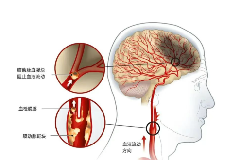在這些因素的作用下血管內(nèi)皮受損,促使炎性細胞黏附,同時低密度脂蛋白膽固醇在血管壁沉積,逐漸演變?yōu)閯用}粥樣斑塊,斑塊逐漸增大可阻塞血管腔造成管腔的狹窄,如同兩只手掐住了頸部,造成腦組織缺血、缺氧,患者感到頭暈、目眩、思維能力明顯下降。嚴重時甚至造成管腔的閉塞或斑塊破裂急性血栓形成,阻斷血流,導致腦萎縮、腦梗死。