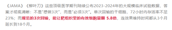 3次回輸通過“多次補(bǔ)充”,逐步積累足夠數(shù)量的有效細(xì)胞,避免修復(fù)“后繼乏力”。